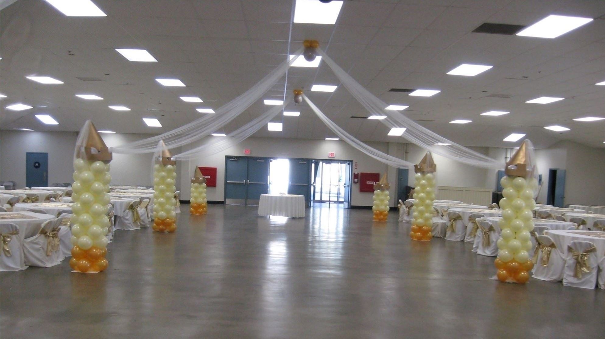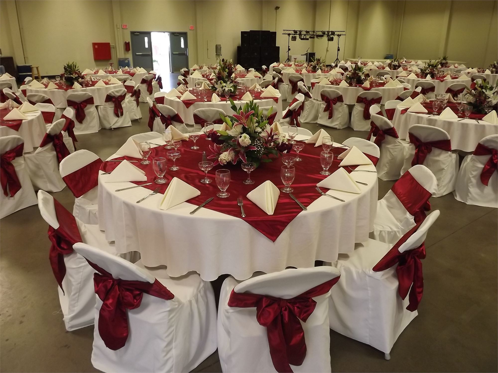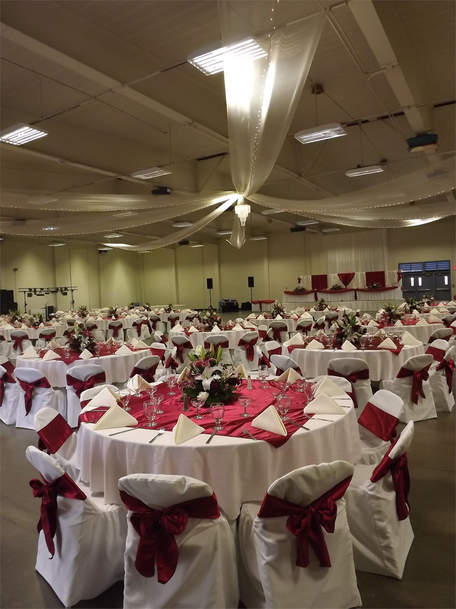 The largest building at the Fairpark, the Convention Center, has an open floor plan that is great for large events such as trade shows, conventions, or banquets. The high ceiling in the Convention Center offers great opportunity for many styles of decorations, while creating a spacious and open feeling for guests.